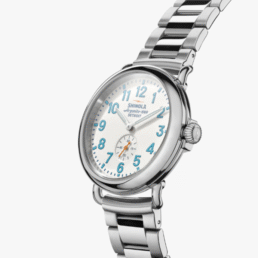 A good watch not only tells time, it sets the tone for your whole day. Built to last, and named accordingly, every detail of The Runwell was engineered to ensure the highest possible quality. The Argonite 5021 high-accuracy movement is the powerful motor behind this bold blue dial, chronograph and sub-second. The polished stainless steel case is accentuated by classic pumpkin crown while teak leather straps complement the refined dial handsomely.